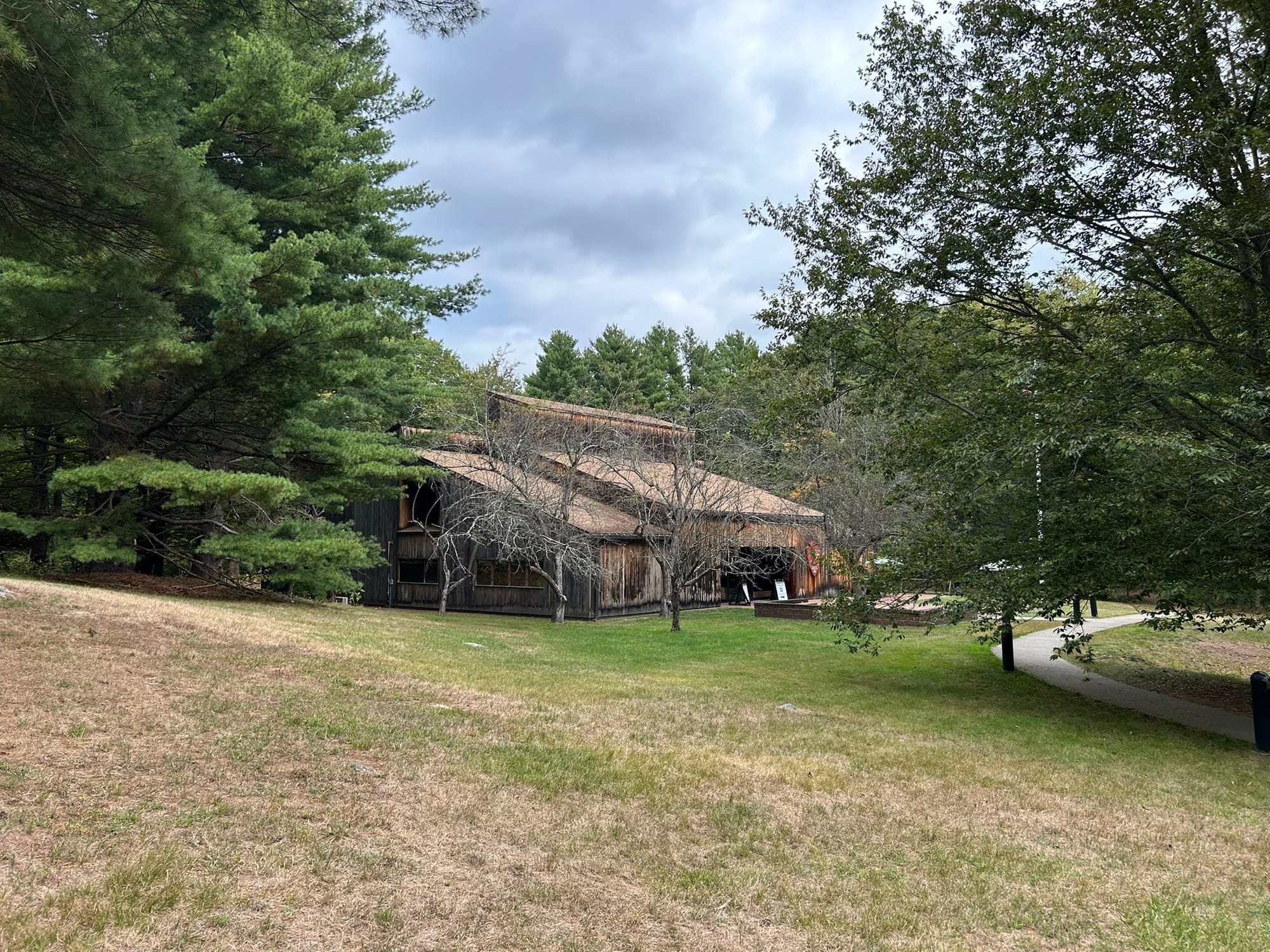 We then headed over to Concord where the Militiamen turned the British back and it was a better visit. The traffic was building so it wasn’t an easy drive on those narrow roads, but we made it to the Old North Bridge where the main battle occurred. The parking lot is across the road and you walk across and down a path to the bridge. There’s a monument on this side and a British grave. Then you can walk over the bridge and see the Minuteman statue which is very impressive.