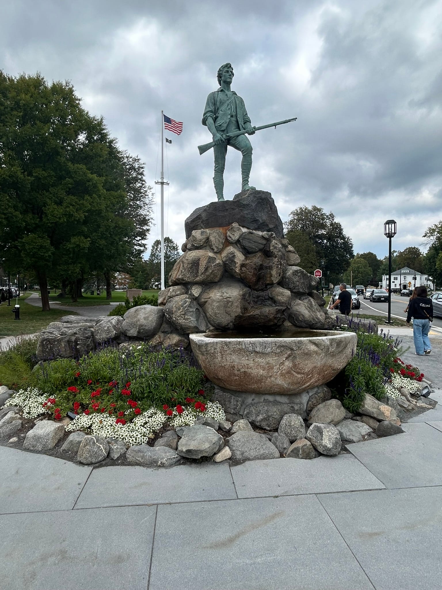 Today we drove into Lexington and Concord to visit the beginning of the American Revolution and the "shot heard round the world". My recollection of American history was a bit fuzzy on the details. I knew some Minutemen had faced off with the British Regulars and ultimately sent them packing and this was a good refresher. The Minuteman National Historic Park runs most of the way along Battle Road from Lexington to Concord where the British marched both ways being attacked on the way back to Boston. There are a lot of historical homes along the way, some graves and in both towns, and memorials to the Minutemen.