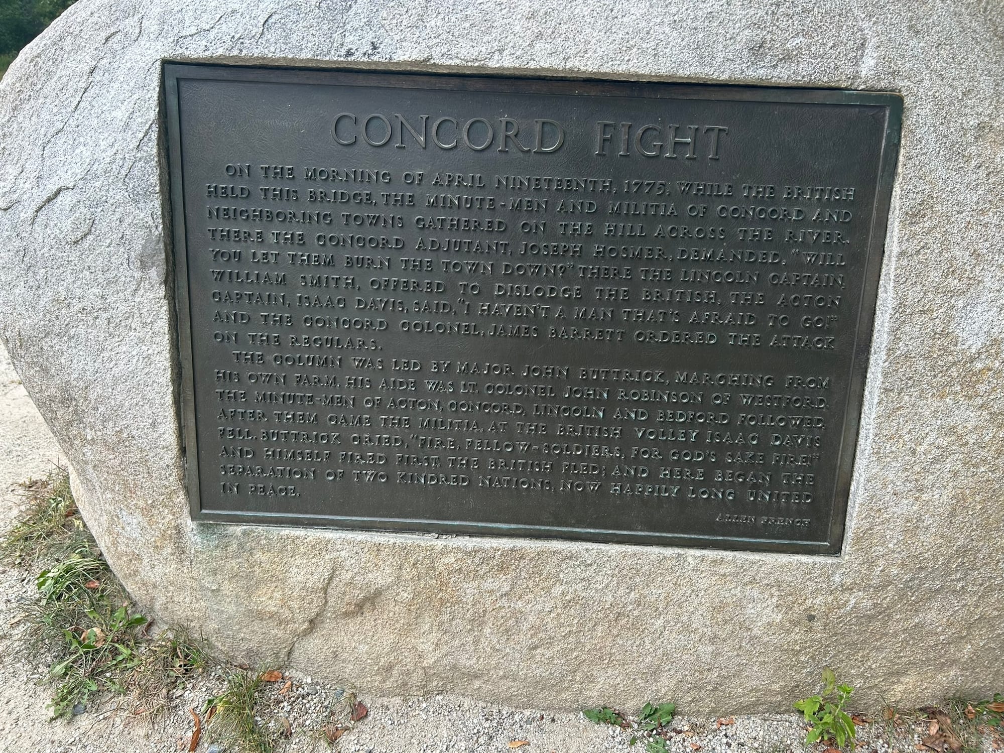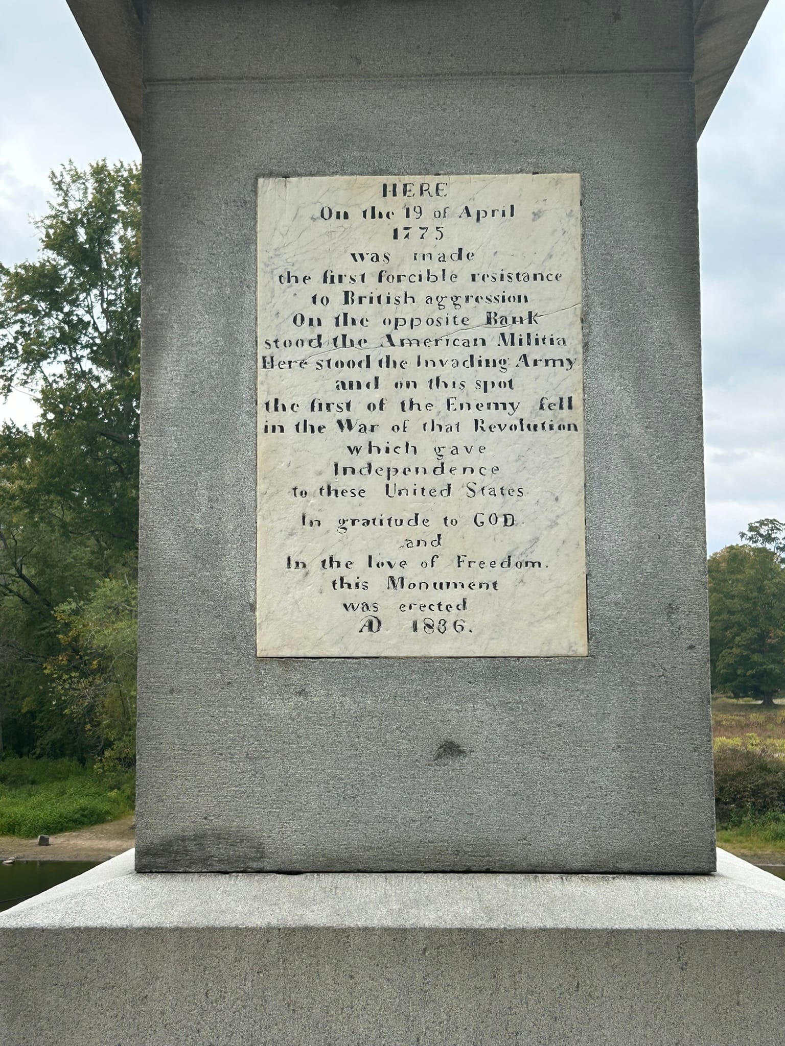 There was a Park Ranger there telling the history of what happened so it was very interesting. There's a hill behind the statue where the Minutemen mustered that day for their march down to the bridge to face off with the British. It was here that the "shot heard round the world" was fired since this is the actual spot when Americans fired back on their government. Apparently the Americans didn't shoot at Lexington so this was the moment things turned.